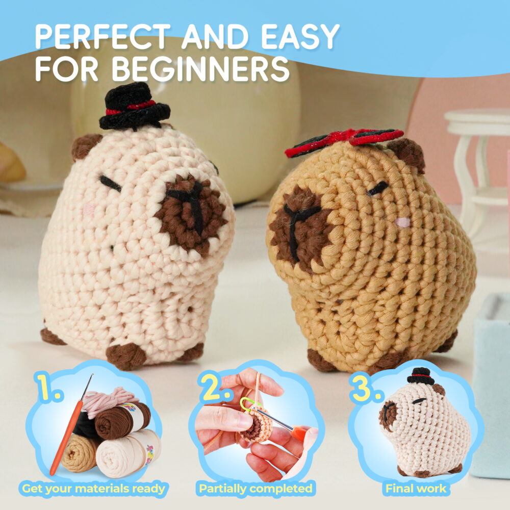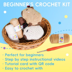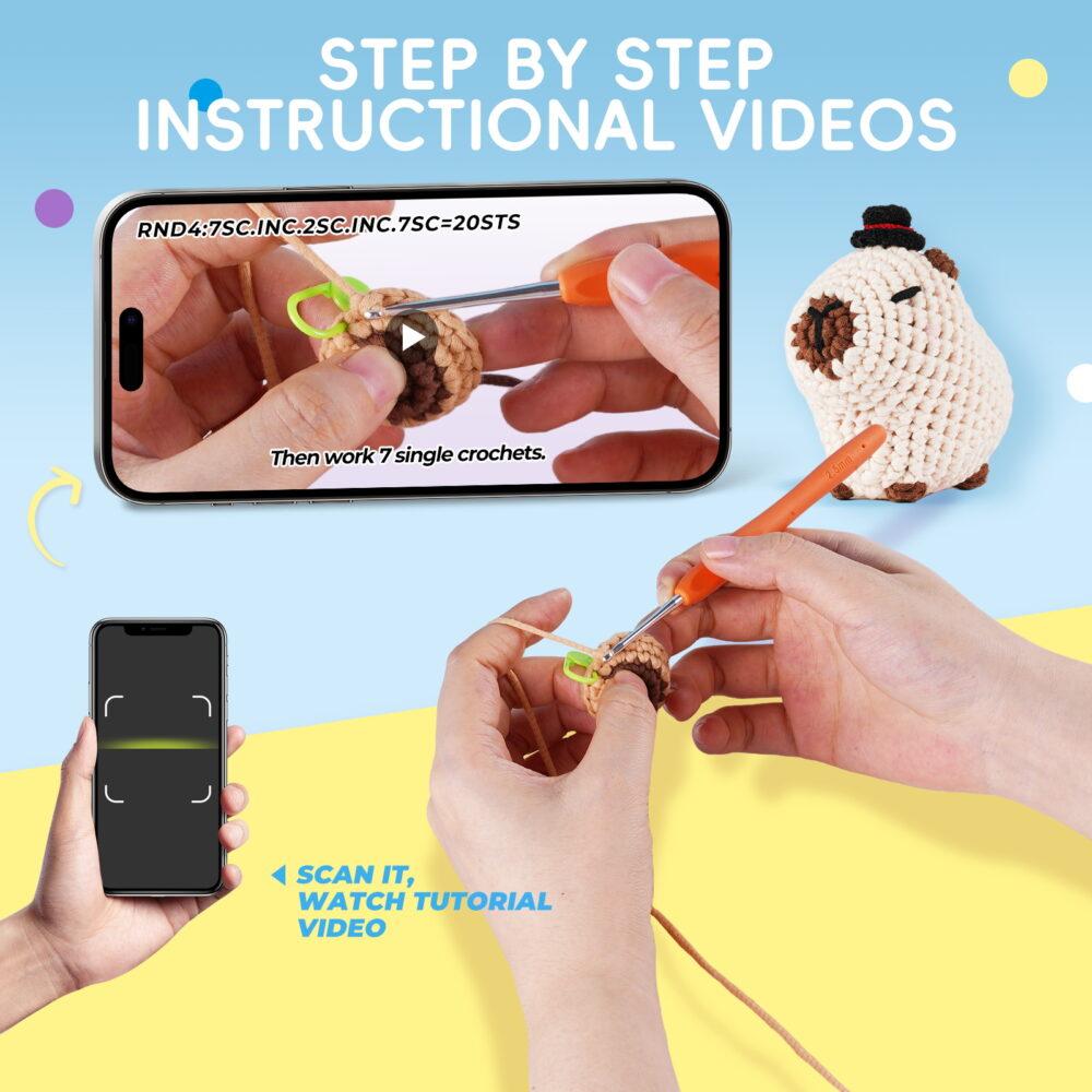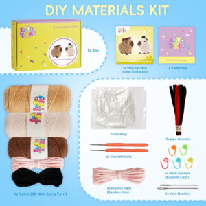 Includes everything you need: an ergonomic crochet hook, soft beginner-friendly yarn, stitch markers, safety eyes, a blunt needle, stuffing, plus detailed PDF and video tutorials—no extra supplies needed!